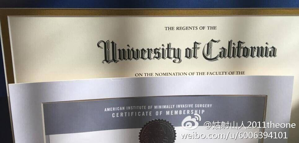 (注:配有照片,美国加利福尼亚大学微创手术会会员。)