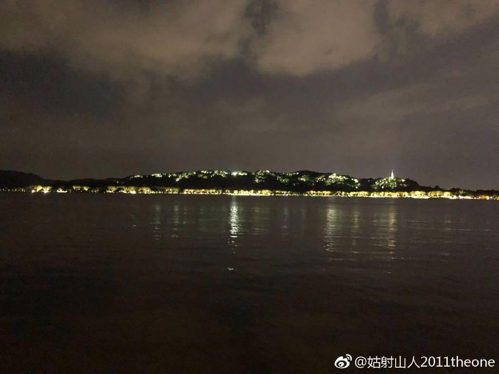 (注:配有照片,西湖夜景。)