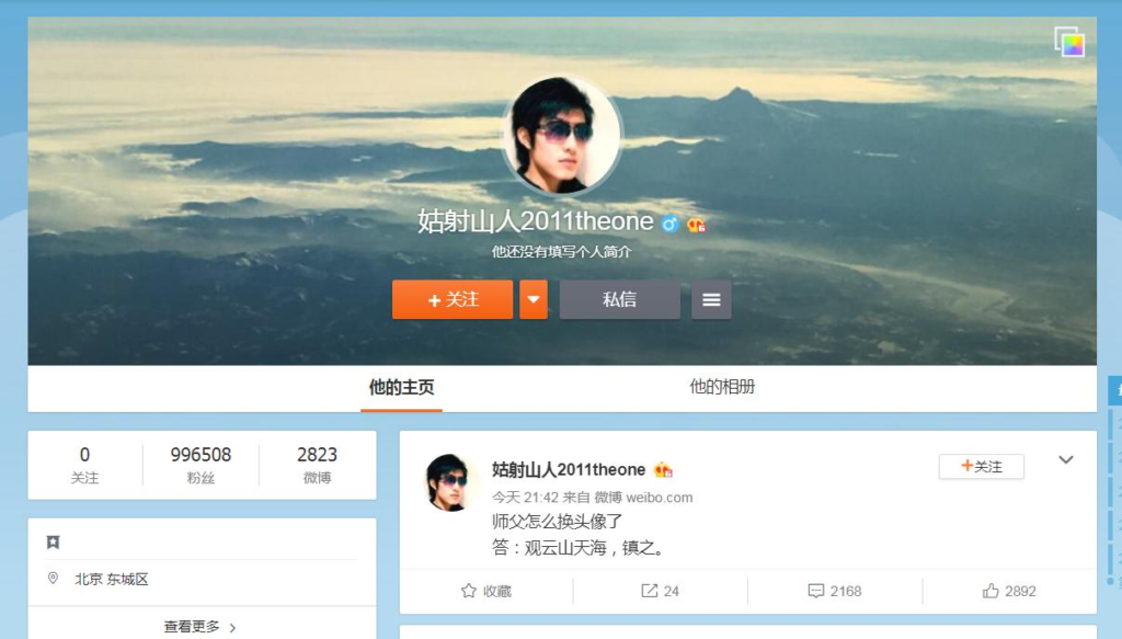 (注:配有照片,当晚约21:30分,微博头像换成彩色肖像照片。)