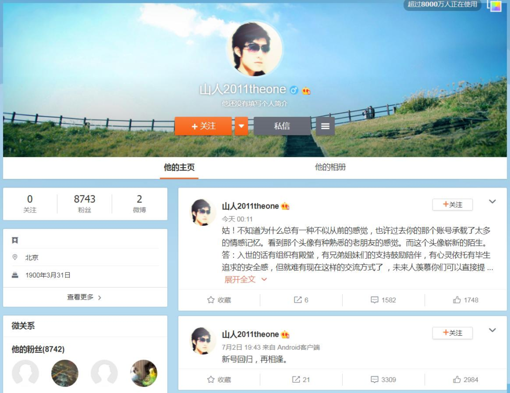 内网新账号 微博内搜索用户名:山人2011theone